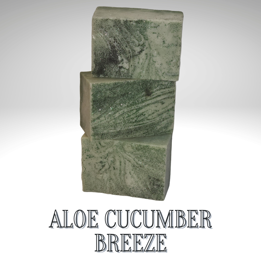 Distilled Water, Aloe Vera Juice, Sodium Hydroxide, Coconut Oil, Palm Oil, Olive Oil, Sweet Almond Oil, Castor Oil, Shea Butter, Flaxseed Gel, Stearic Acid, Aloe Vera Puree, Cucumber Puree, Sodium Lactate, French Green Clay, Alfalfa Leaf, Citronella Oil, Fragrance and Skin-Safe Colorants.